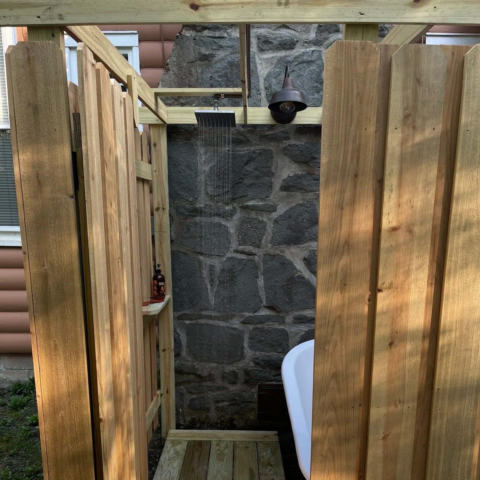 Open-Air Cedar Shower and Deck - Catskill Mountains, NY
